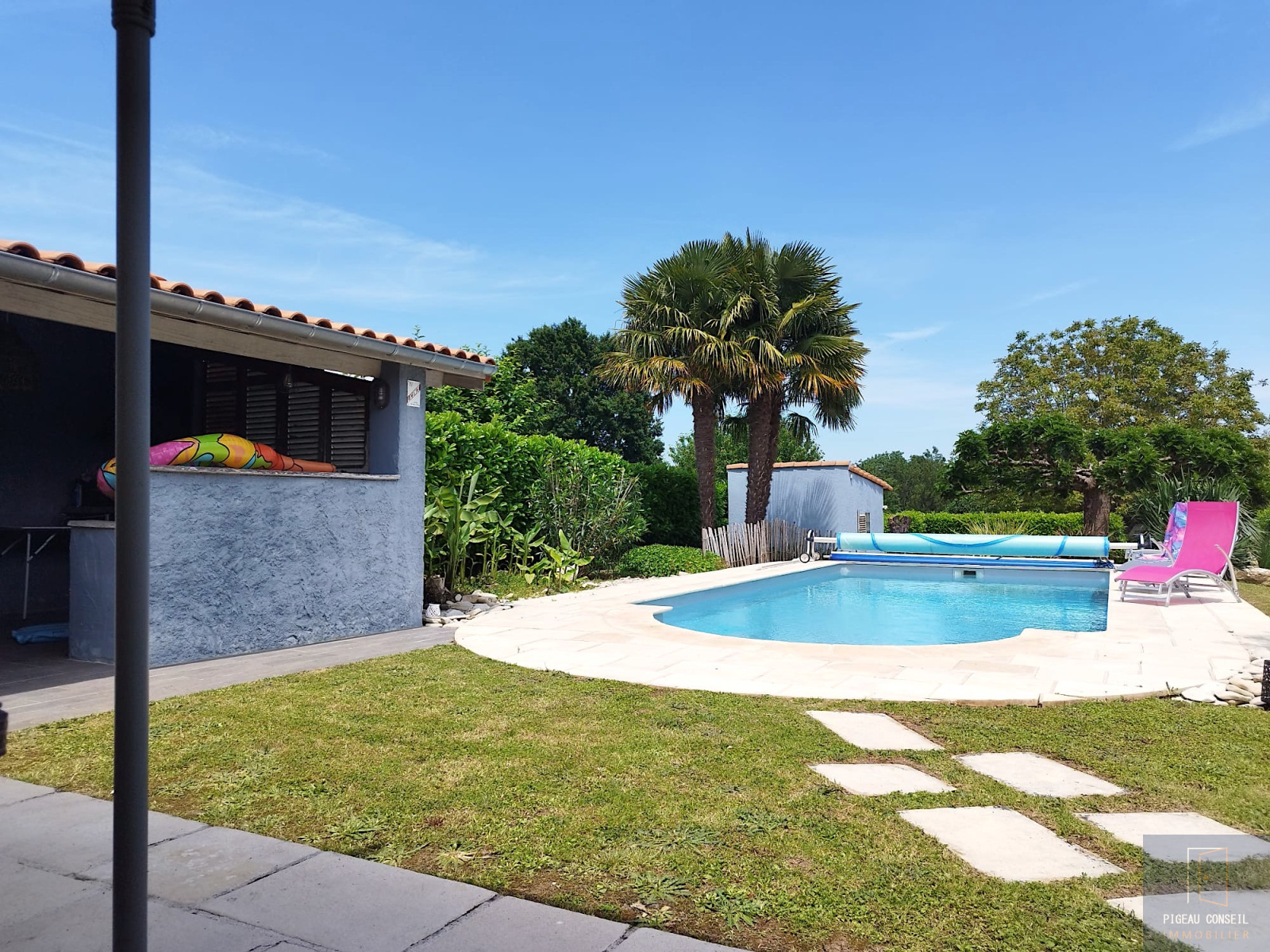 Côté extérieur, tout est réuni pour savourer les beaux jours : une piscine 8x4 sans vis-à-vis avec le local technique, un espace cuisine d'été sous abri, un double garage spacieux, un atelier et abri.