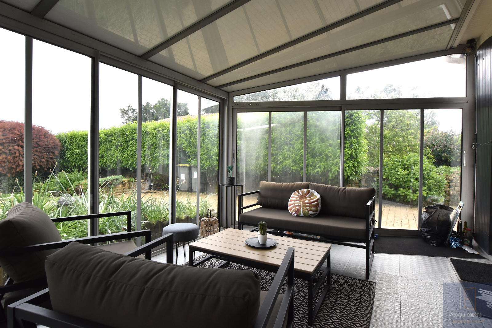 Une véranda vient compléter les espaces de vie, idéale pour profiter de l'extérieur toute l'année.