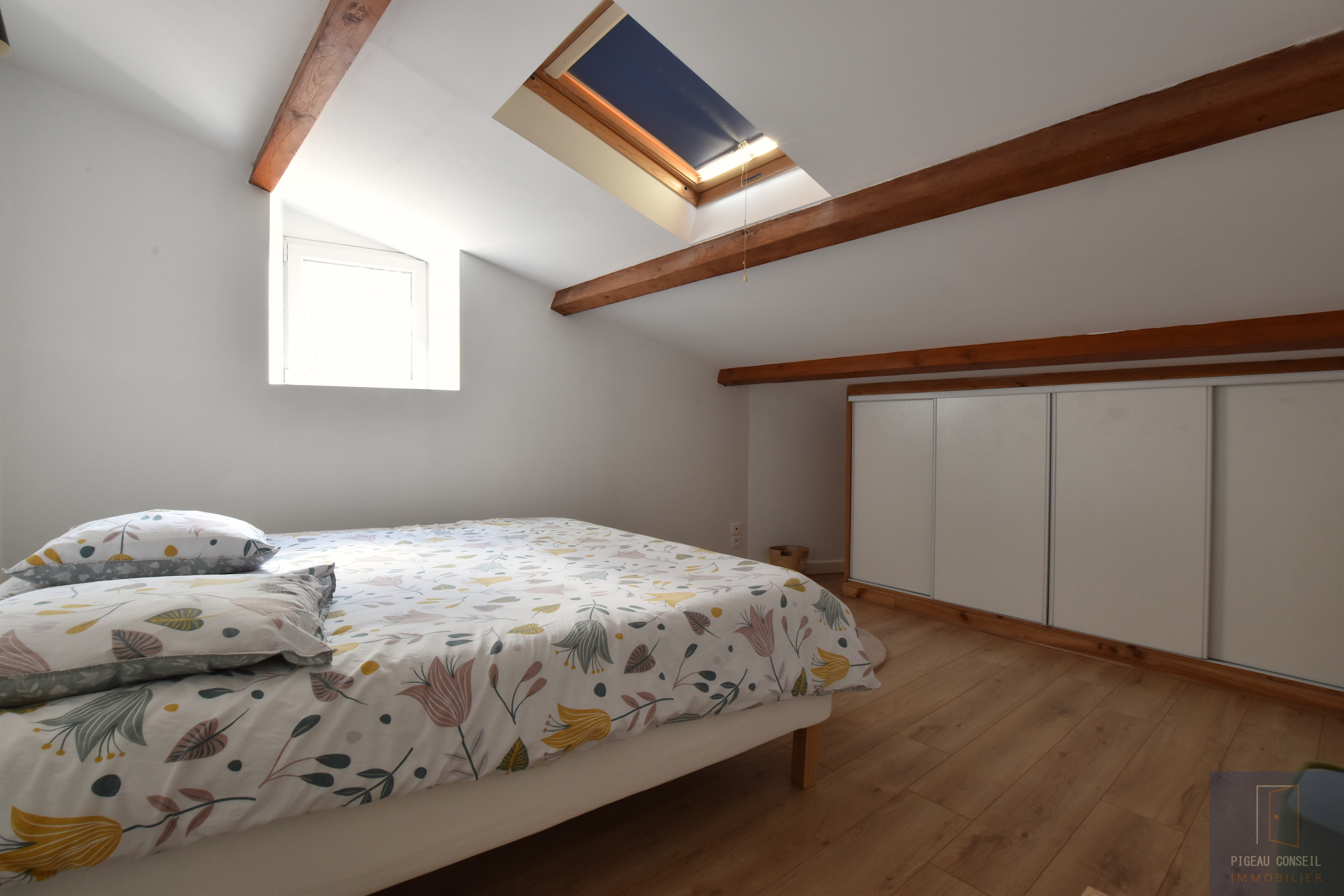 A l'étage : un grand espace palier, 4 belles chambres de 15 à 17 m2, une grande salle de bains avec wc.