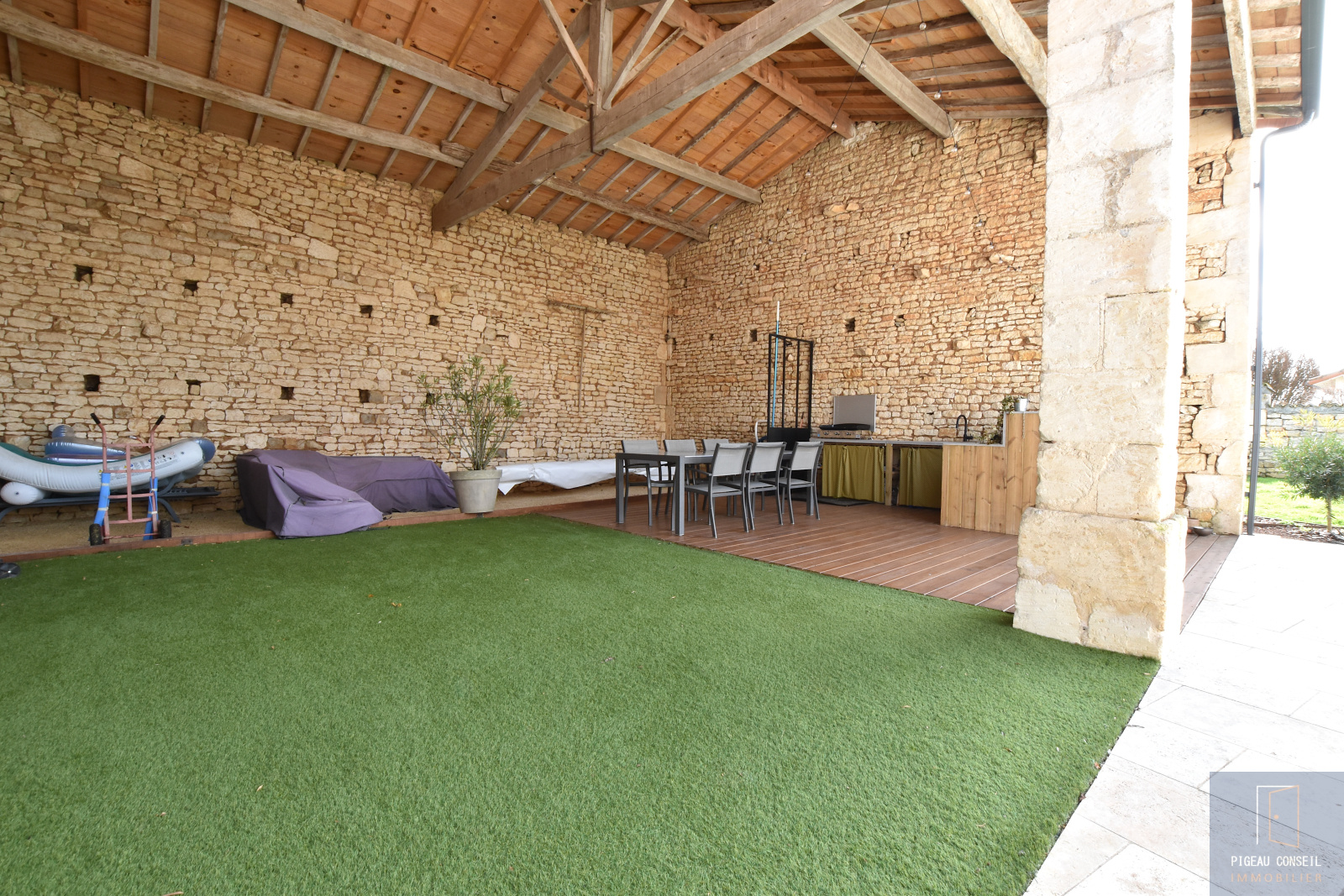 Pour recevoir vos amis, ce bien offre un très beau préau en pierre de 80 m2 donnant sur la piscine.